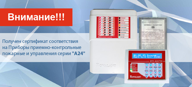 ВНИМАНИЕ!!! Получен сертификат соответствия на Приборы приемно-контрольные пожарные и управления серии "А24"