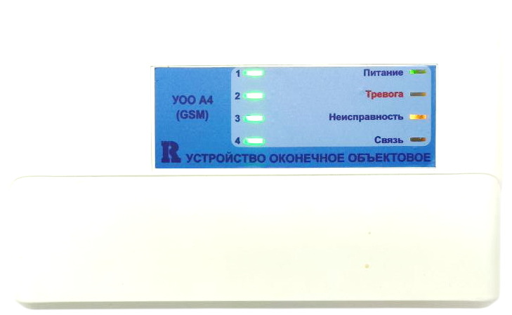 УОО серии "А4" предназначены для контроля состояния 4-х шлейфов охранной сигнализации, индикации их состояния и состояния и режимов работы на своей лицевой панели и обеспечивают приём, обработку, регистрацию и хранение сигналов от охранных извещателей и других технических средств, включенных в ШС, а также преобразование, хранение и выдачу сигналов тревоги на системы передачи извещений по различным каналам связи и/или телефоны сотовой связи подключенных к УОО абонентов, а также бесперебойное питание подключенных к ним внешних устройств стабилизированным напряжением 12В и током до 100мА.