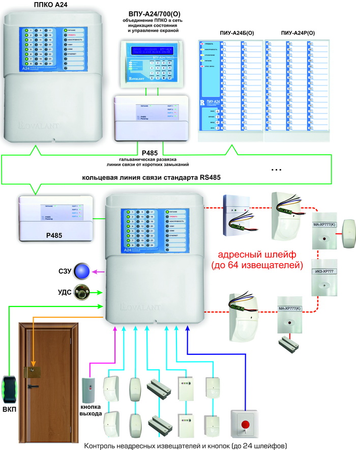 Индикация состояния охранных зон, в состав которых могут входить как адресные метки, так и обычные неадресные шлейфы приборов как и прежде отображается на светодиодных индикаторах самих приборов "А24" и "А24М", а также на выносных панелях ВПУ-А24/700 и ПИУ-А24Б(О), ПИУ-А24Р(О).