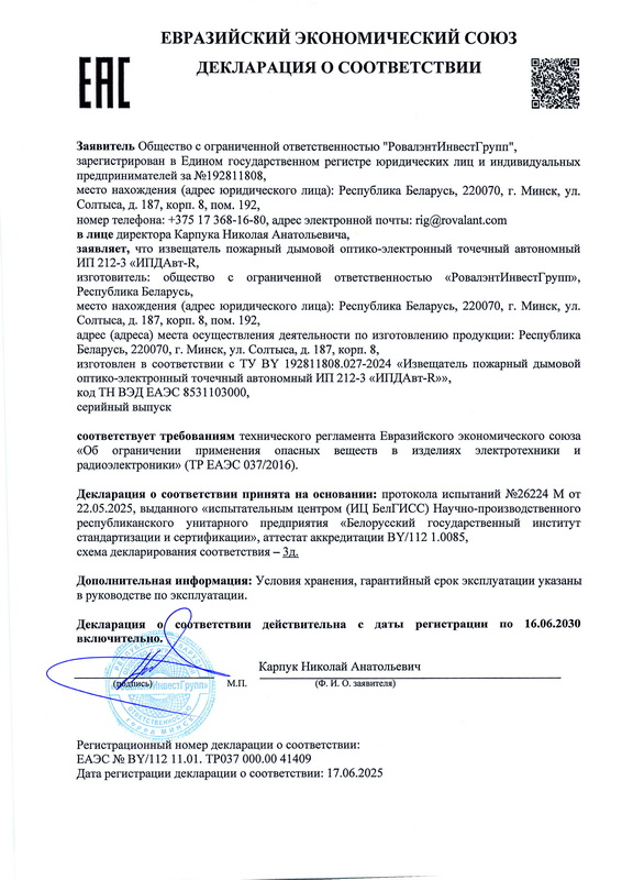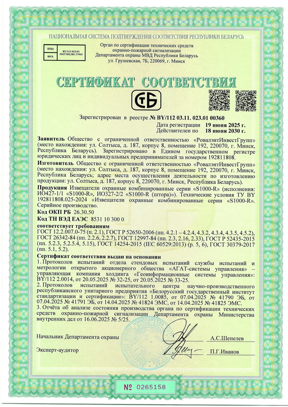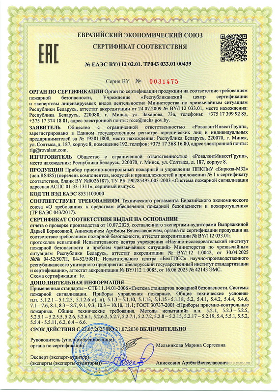 С 30.06.2023г. всвязи с переездом производства вместо него действует Сертификат соответствия ЕАЭС BY/112 02.01. ТР043 022.01 00179