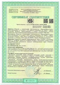 С 30.06.2023г. всвязи с переездом производства вместо него действует Сертификат соответствия ЕАЭС BY/112 02.01. ТР043 022.01 00177