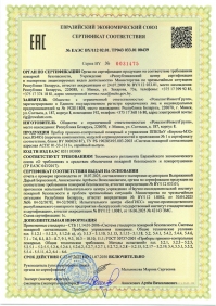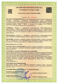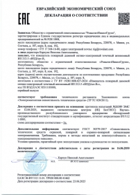 С 18.05.2023г. всвязи с переездом производства вместо него действует Сертификат соответствия ЕАЭС BY/112 02.01. ТР043 033.01 00298