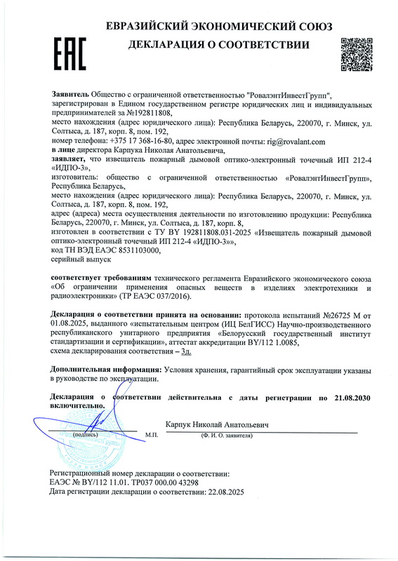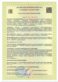 С 18.05.2023г. всвязи с переездом производства вместо него действует Сертификат соответствия ЕАЭС BY/112 02.01. ТР043 033.01 00296