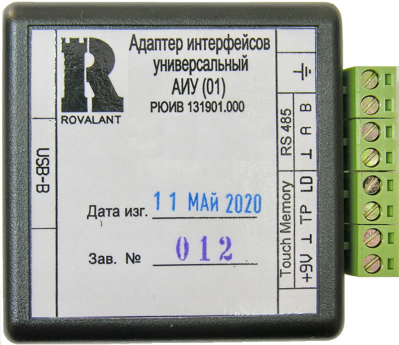 Адаптер интерфейсов универсальный АИУ(01) предназначен для создания асинхронного последовательного интерфейса на физической линии RS485, организации конфигурирования внешних устройств с помощью ПЭВМ, обеспечения ввода в ПЭВМ кодов пропусков с внешнего считывателя по протоколу Touch Memory.